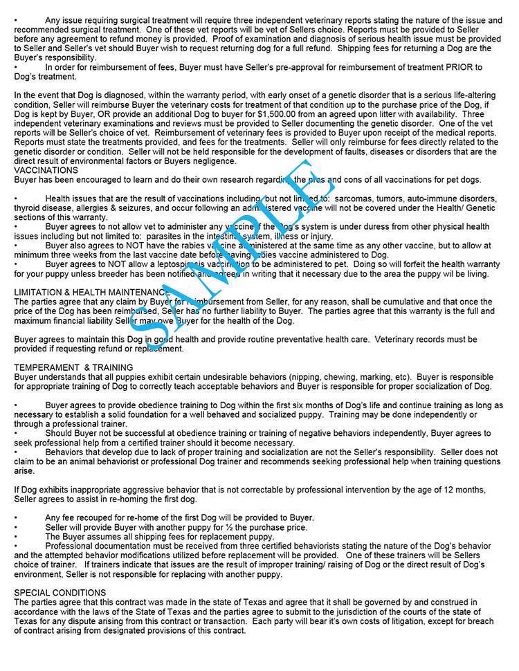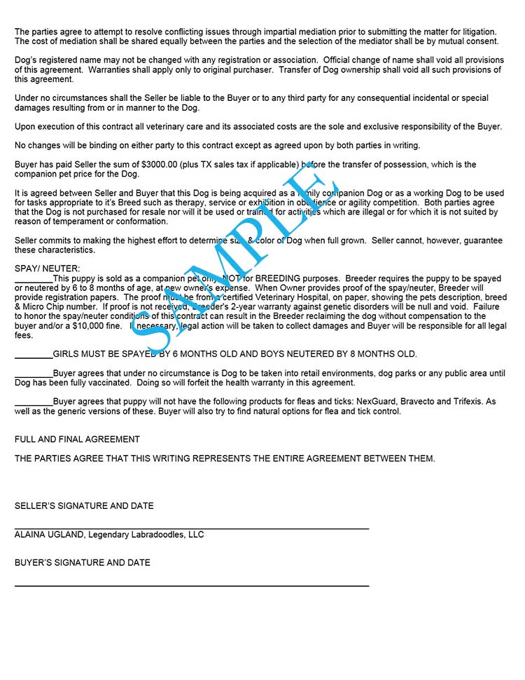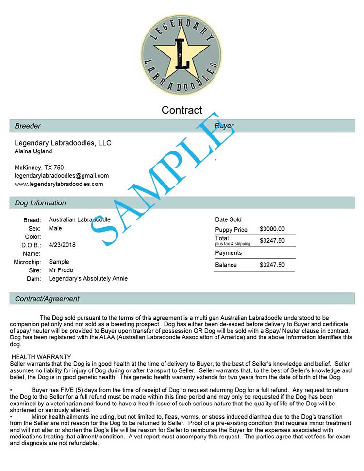 Click each page above to see a larger image and read our Legendary Labradoodle contract.